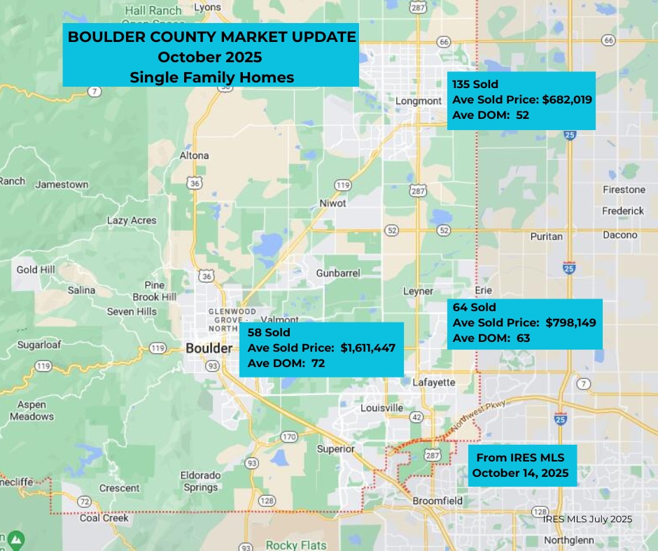 A Market Finding Its Balance The Boulder County housing market is gradually moving towards balance this fall. While prices have stabilized compared to late summer, shifts in inventory and buyer activity are beginning to shape a new landscape across Boulder, Erie, and Longmont. Average Home Prices Remain Steady The average sales price of single family […]